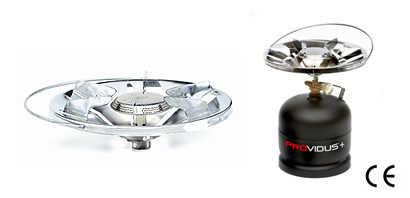 Large and robust camping stove diam. 22 cm. to be fitted on gas cylinders. Chrome plated Long Life surface treatment. Stainless steel high-power burner. Complete with handle.